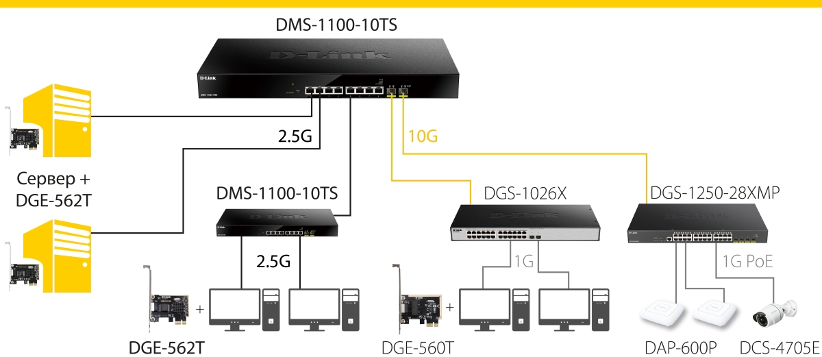 Типовые решения с использованием мультигигабитного оборудования D-Link