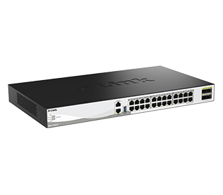 Коммутатор с 24 портами 10/100/1000Base-T и 2 комбо-портами 100/1000Base-T/SFP (24 порта PoE 802.3af/at, PoE-бюджет 370 Вт)