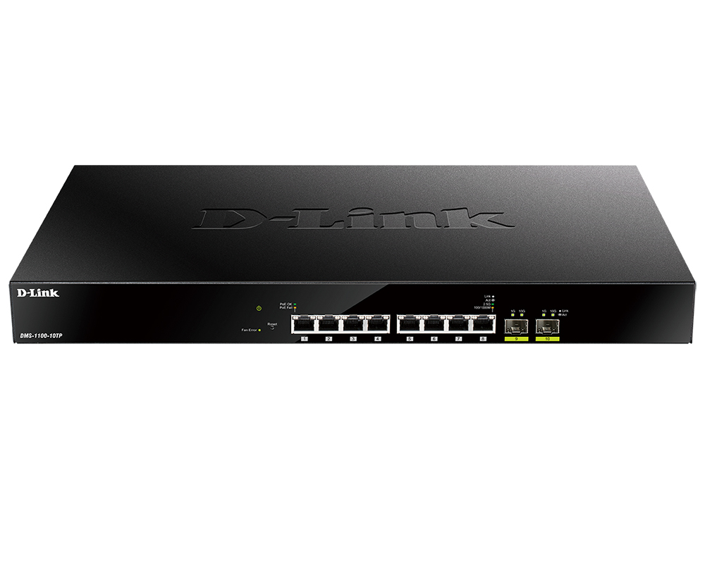 8 портов данного коммутатора поддерживают стандарт IEEE 802.3at PoE. Каждый порт PoE подает питание мощностью до 30 Вт при общем бюджете коммутатора 240 Вт, что позволяет пользователям подключать к DMS-1100-10TP точки доступа и сетевые камеры, совместимые со стандартом 802.3at. Это позволяет размещать оборудование в труднодоступных местах вне зависимости от расположения электрических розеток и минимизировать прокладку кабеля.