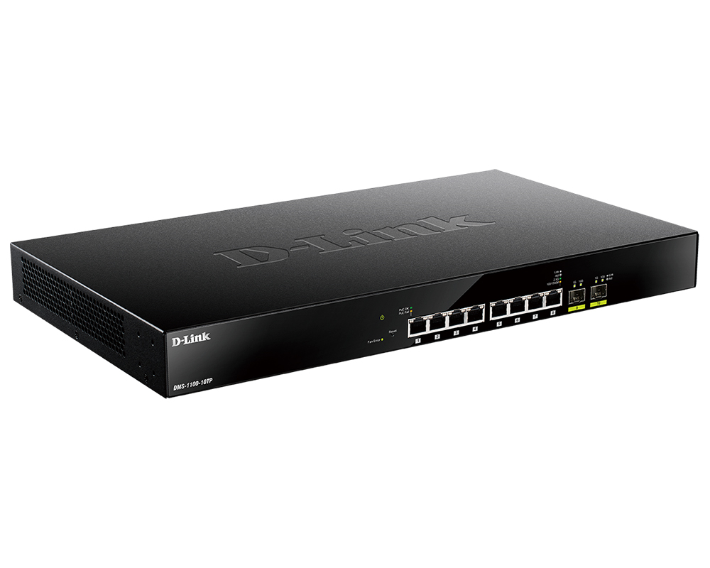 Управляемый коммутатор DMS-1100-10TP оснащен 8 портами 10/100/1000/2.5GBase-T с поддержкой PoE для подключения по витой паре, а также 2 портами 10GBase-X SFP+, применяемыми для организации подключения к высокоскоростной магистрали. Благодаря поддержке технологии 2.5 Gigabit Ethernet данный коммутатор является идеальным решением для работы с беспроводными точками доступа 802.11ac Wave 2, а 10-гигабитные uplink-порты SFP+ обеспечивают соединение с высокой пропускной способностью при организации более крупной локальной сети.