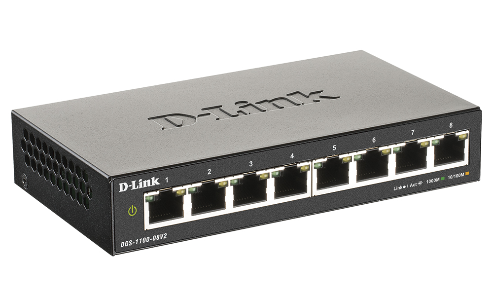 The DGS-1100-08V2 switch is designed to meet the requirements of small, medium, and enterprise businesses. Advanced management features, a range of diagnostic and troubleshooting tools, and energy efficient technologies provide a flexible solution to meet your networking requirements.