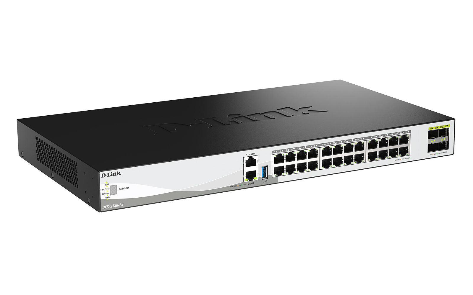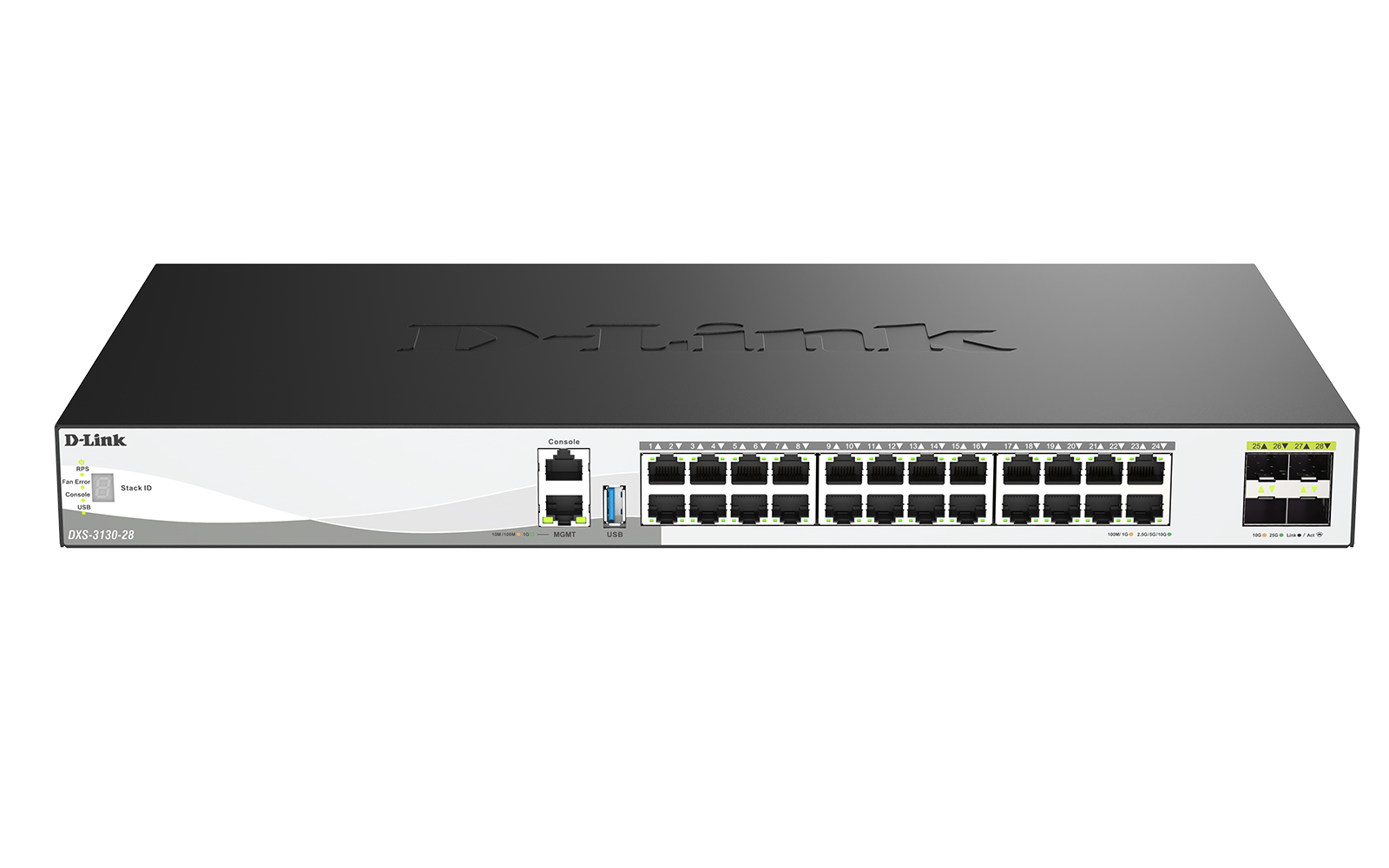 DXS-3130-28 L3 Stackable Managed Switch with 24 10GBase-T Ports and 4 25GBase-X SFP28 Ports