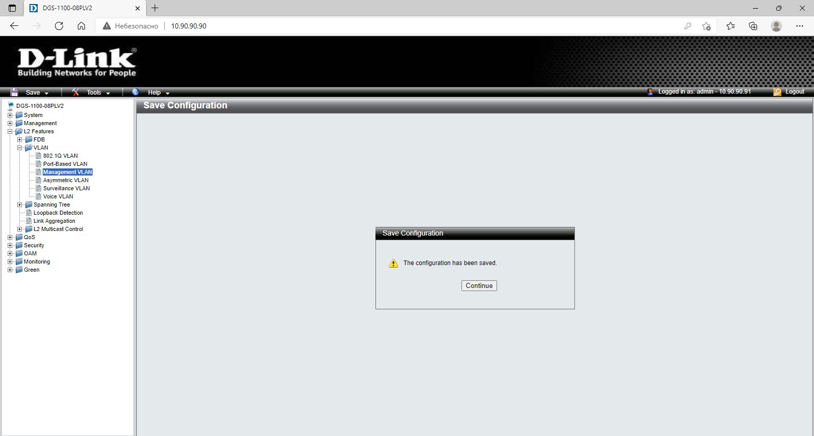 Вопрос: Пример настройки Management VLAN через Web-интерфейс