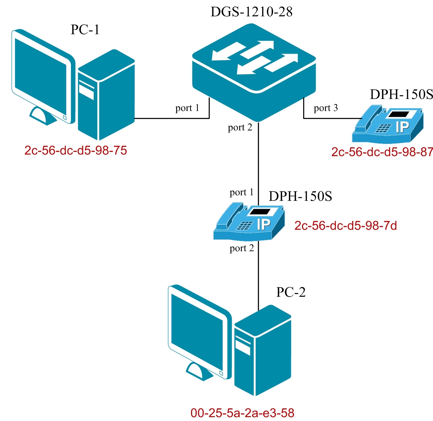 Подключаем телефоны и клиентов в соответствии со схемой на рисунке 1, и после этого порт 2 должен динамически добавиться во vlan VOIP_1 как Untagged.