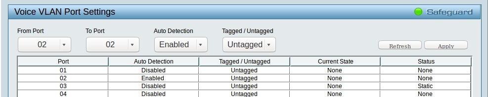 В разделе Voice VLAN Port Settings нужно настроить автоопределение на порту 2, на порту 3 это делать не нужно, так как он добавлен в VOICE VLAN статически.