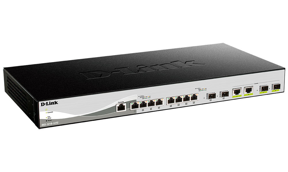 Настраиваемый коммутатор серии SmartPro DXS-1210-12TC, оснащенный 8 портами 10GBase-T, 2 портами 10GBase-X SFP+ и 2 комбо-портами 10GBase-T/SFP+, осуществляет коммутацию трафика на скорости до 10 Гбит/с и предназначен для использования в сетях предприятий малого и среднего бизнеса. Благодаря наличию комбо-портов 10GBase-T/SFP+, DXS-1210-12TC предоставляет широкие возможности подключения, упрощая, таким образом, интеграцию в сеть. За счет высокой производительности данный коммутатор позволяет использовать такие услуги, как облачные сервисы, виртуализация, а также приложения server-to-server. DXS-1210-12TC является экономически выгодным решением для организации сетей 10 Gigabit Ethernet.