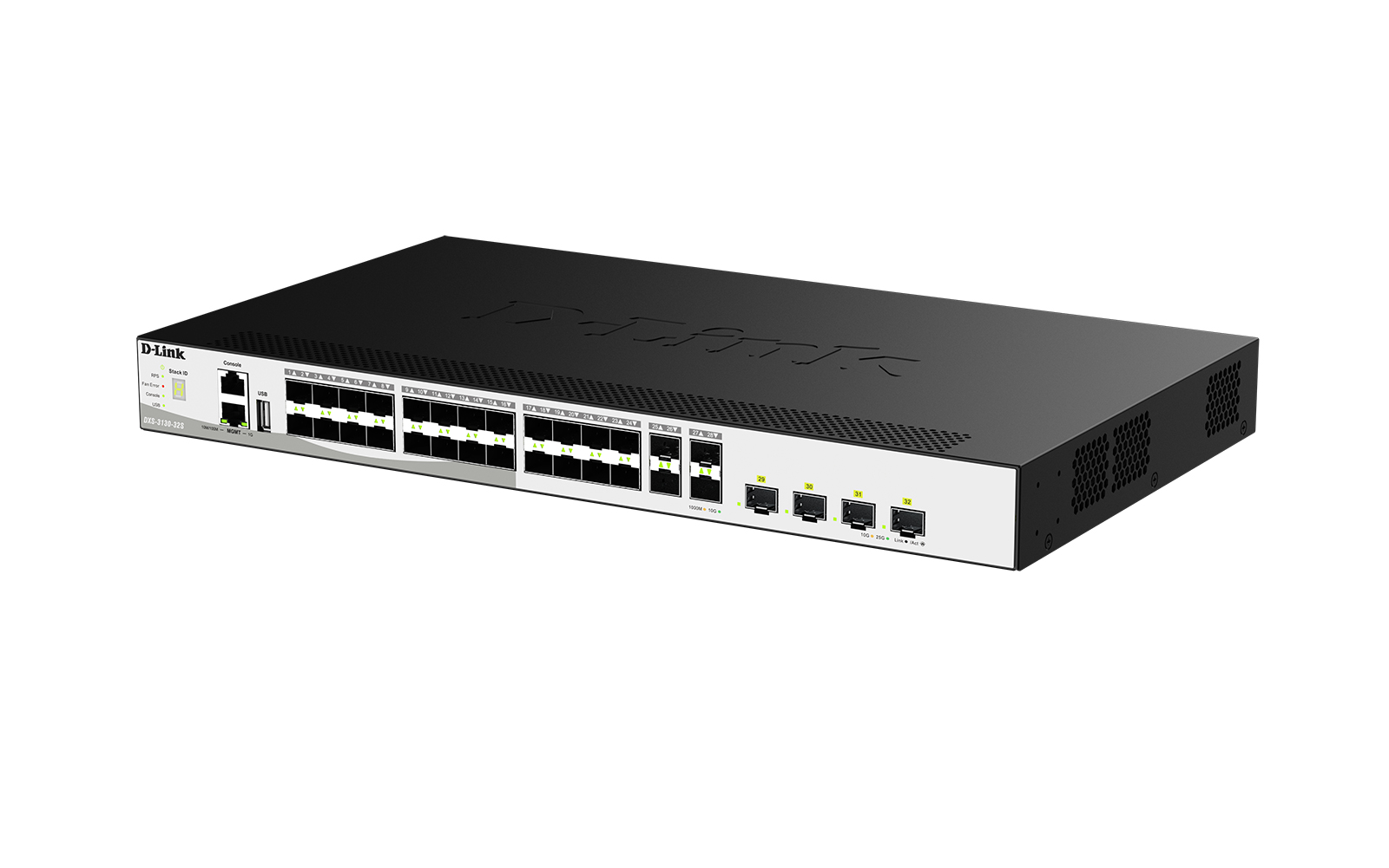 The DXS-3130-32S 10G Layer 3 Stackable Aggregation Managed Switch is designed for secure connectivity in an enterprise or metro Ethernet access network and supports both multicasting and enhanced security, making it an ideal 10G/multi-Gigabit access layer solution. The DXS-3130-32S features 28 10G/SFP+ ports and 4 10/25G SFP28 ports, offering a versatile and high-speed networking connection. It also includes a USB 2.0 port, enabling direct booting of images and uploading of configuration files, as well as convenient storage of syslog files on a USB 2.0 device.