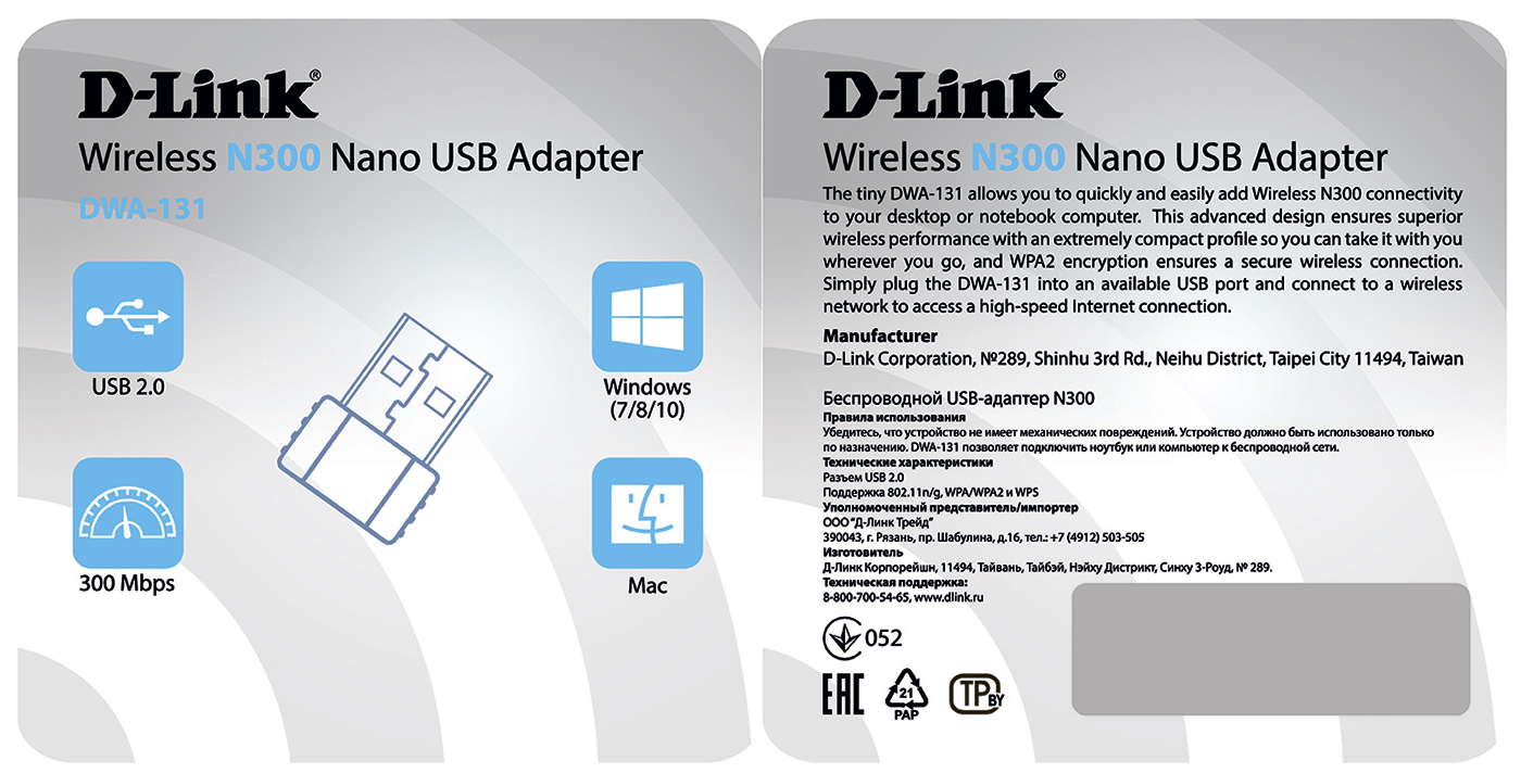 Беспроводной USB-адаптер DWA-131 обеспечивает высокую производительность беспроводного подключения для настольного компьютера, а также эффективную работу приложений, требовательных к полосе пропускания, таких как IP-телефония, сетевые игры, загрузка и потоковое видео. DWA-131 поддерживает шифрование WPA/WPA2 для предотвращения вторжений в сеть и защиты личной информации.